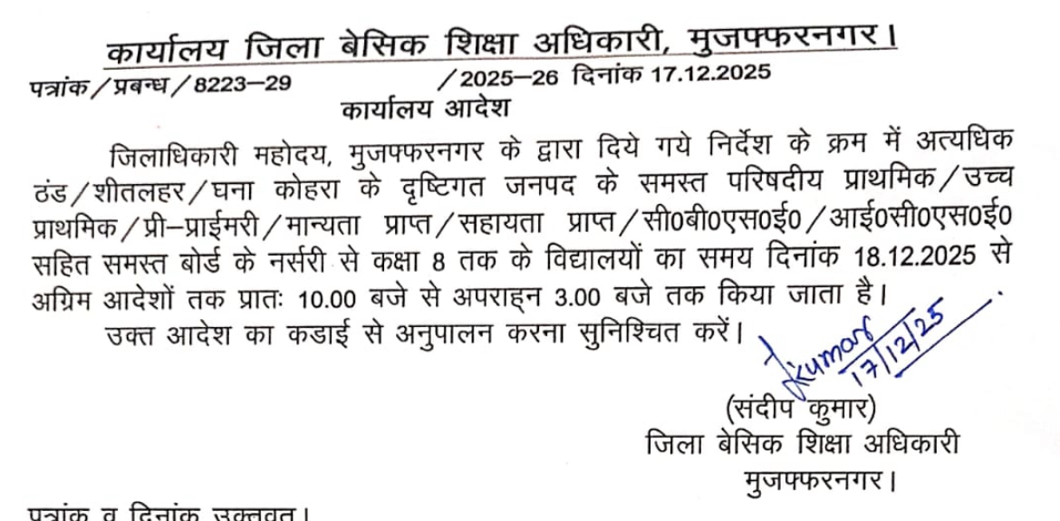 ठंड के चलते मुजफ्फरनगर में स्कूलों का समय बदला