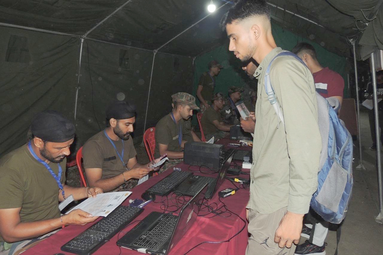 शनिवार को अग्निवीर भर्ती रैली कराने के लिए आर्मी का दूसरा दिन रहा। भर्ती के दौरान बिजनौर, नगीना, धामपुर और चांदपुर के के 1018 युवा शुक्रवार की देर रात ही मुजफ्फरनगर पहुंच गए। पड़ौसी जिला होने के कारण कम ही संख्या में अभ्यर्थी सड़कों पर रहे, अन्यथा सभी अपने परिचितों के घरों पर रूके रहे, लेकिन शुक्रवार सुबह तीन बजे के बाद भर्ती स्थल के पास भीड़ लगनी शुरू हो गई। चार बजे बूंदाबांदी शुरू हो गई। इस कारण करीब सात बजे नुमाईश मैदान में चारों तहसीलों के युवाओं को प्रवेश मिला। सभी अभ्यर्थी पहले अपने प्रमाण-पत्र की चैकिंग के लिए लाइन में लगे। इसके बाद 1600 मीटर की दौड़ में भाग लिया। एक हजार से अधिक अभ्यर्थियों को अलग-अलग समूह बनाकर कुल 10 चरणों में दौड़ाया गया, जिसमें एक समुह में करीब 100 अभ्यर्थियों को चेस्ट नंबर देकर दौड़ाया गया। तहसील के अनुसार चेस्ट नंबर दिए गए, जिससे भर्ती प्रक्रिया में आर्मी जवानों व अधिकारियों को पहचान करने में आसानी रही। बिजनौर के युवाओं को दूसरे दिन नुमाइश ग्राउंड के ट्रेक से स्टेडियम रोड होते हुए मेरठ रोड और फिर नुमाइश ग्राउंड में प्रवेश के बाद ट्रैक पर दौड़ने का रास्ता समझाया गया। चेस्ट नंबर देने के लिए ग्रुपों में युवाओं को दौड़ाया गया। इसके बाद दौड़ में पास हुए अभ्यर्थियों की अन्य प्रक्रियाएं पूरी की गई। इस दौरान युवाओं ने सेना में भर्ती होने के लिए खूब पसीना बहाया। आर्मी मेरठ कर्नल एवं भर्ती के नोडल अधिकारी सत्यजीत बिबेल ने बताया कि शनिवार को बिजनौर की चार तहसीलों के 1018 युवाओं ने दौड़ लगाई। इसमें चयन होने के बाद उनकी शारीरिक जांच व अन्य प्रक्रियाएं हुई। चेस्ट नंबर देकर अलग-अलग राउंड में दौड़ लगवाई गई। देर शाम तक दौड़ में पास हुए अभ्यर्थियों ने पुसअप, जिगजैग, नौ फिट गड्ढा कूद आदि प्रक्रियाओं में भाग लिया।