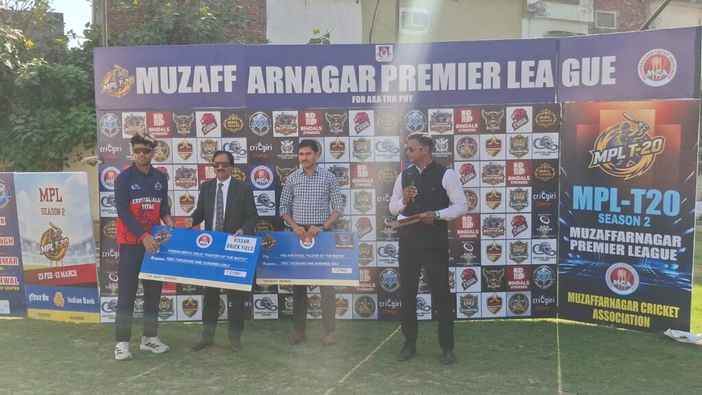 लोकपथ लाइव, मुजफ्फरनगर। सीसीएस स्पोर्ट्स स्टेडियम में चल रहे मुज़फ्फरनगर प्रीमियर लीग-2 के 16वें लीग मुकाबले में रोमांच मुकाबले हुए। भवानी लायंस ने अपनी सधी हुई बल्लेबाजी और जुझारू खेल के दम पर क्रिस्टल बालाजी टाइटंस को 2 विकेट से मात देकर अंक तालिका में अपनी स्थिति मजबूत कर ली है। अंतिम ओवर तक चले इस सांस रोक देने वाले मुकाबले में विशाल सिंह चौधरी के हरफनमौला प्रदर्शन ने मैच का पासा पलट दिया।