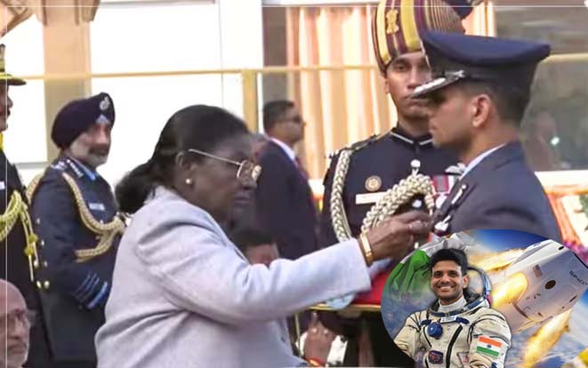 भारतीय वायुसेना के ग्रुप कैप्टन शुभांशु शुक्ला को गणतंत्र दिवस के अवसर पर सोमवार को कर्तव्य पथ पर परेड़ शुरु होने से पहले राष्ट्रपति द्रौपदी मुर्मू ने गणतंत्र दिवस के मुख्य अतिथियों यूरोपियन कमीशन की प्रेसिडेंट उर्सुला वॉन डेर लेयेन और यूरोपियन काउंसिल के प्रेसिडेंट एंटोनियो कोस्टा सेरेमनी के अलावा उप राष्ट्रपति सीपी राधाकृष्णन की मौजूदगी अशोक चक्र प्रदान करके से सम्मानित किया। गौरतलब है कि शुभांशु शुक्ला ने अंतरिक्ष में 18 दिन रहते हुए स्पेस एनीमिया, हृदय स्वास्थ्य, माइक्रोग्रैविटी में धातु मिश्रधातुओं का ठोसकरण और जैविक जैसे सात महत्वपूर्ण वैज्ञानिक प्रयोगों की अगुवाई की। उनके इन अध्ययनों से भारत को गगनयान जैसे भविष्य के मानव मिशनों की सुरक्षा प्रणालियों को महत्वपूर्ण जानकारी मिली। वहीं ग्रुप कैप्टन शुभांशु शुक्ला ने इतिहास रचते हुए अंतरराष्ट्रीय अंतरिक्ष स्टेशन पर कदम रखने वाले पहले भारतीय बनने का गौरव हासिल किया। उन्होने जून 2025 में ऐतिहासिक एक्सिओम मिशन-4 के तहत यह अंतरिक्ष यात्रा पूरी की थी।
