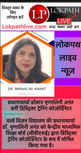 LP Live, Muzaffarnagar: डिस्ट्रिक्ट लेवल पर एमजी वर्ल्ड विज़न विद्यालय की प्रधानाचार्या डॉक्टर मृणालिनी अनंत को CBSE ने डिस्ट्रिक्ट ट्रेनिंग कोऑर्डिनेटर बनाया है। वह कई वर्षों से सीबीएसई में रिसोर्स पर्सन और मास्टर ट्रेनर के रूप में कार्यरत हैं। उनकी उपलब्धियों व सराहनीय कार्य को देखते हुए बोर्ड द्वारा उनको यह सम्मान दिया गया।