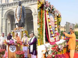 मुख्यमंत्री योगी ने ‘भारत रत्न’ अटल बिहारी वाजपेयी की प्रतिमा पर की पुष्पांजलि