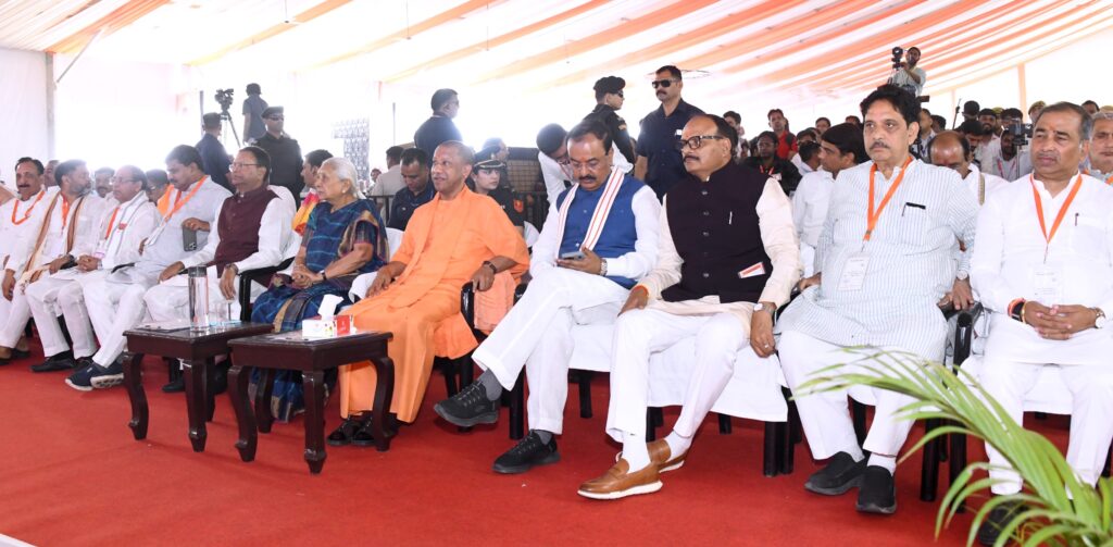 इस अवसर पर उत्तर प्रदेश की राज्यपाल आनंदीबेन पटेल, उपमुख्यमंत्री केशव प्रसाद मौर्य एवं ब्रजेश पाठक, भारतीय जनता पार्टी के प्रदेश अध्यक्ष और केंद्रीय मंत्री पंकज चौधरी, संगठन महामंत्री धर्मपाल, प्रभारी मंत्री सुनील शर्मा, लोक निर्माण विभाग के राज्य मंत्री कुंवर ब्रजेश सिंह, औद्योगिक विकास राज्य मंत्री जसवंत सिंह सैनी समेत अन्य जनप्रतिनिधि उपस्थिति रहे।