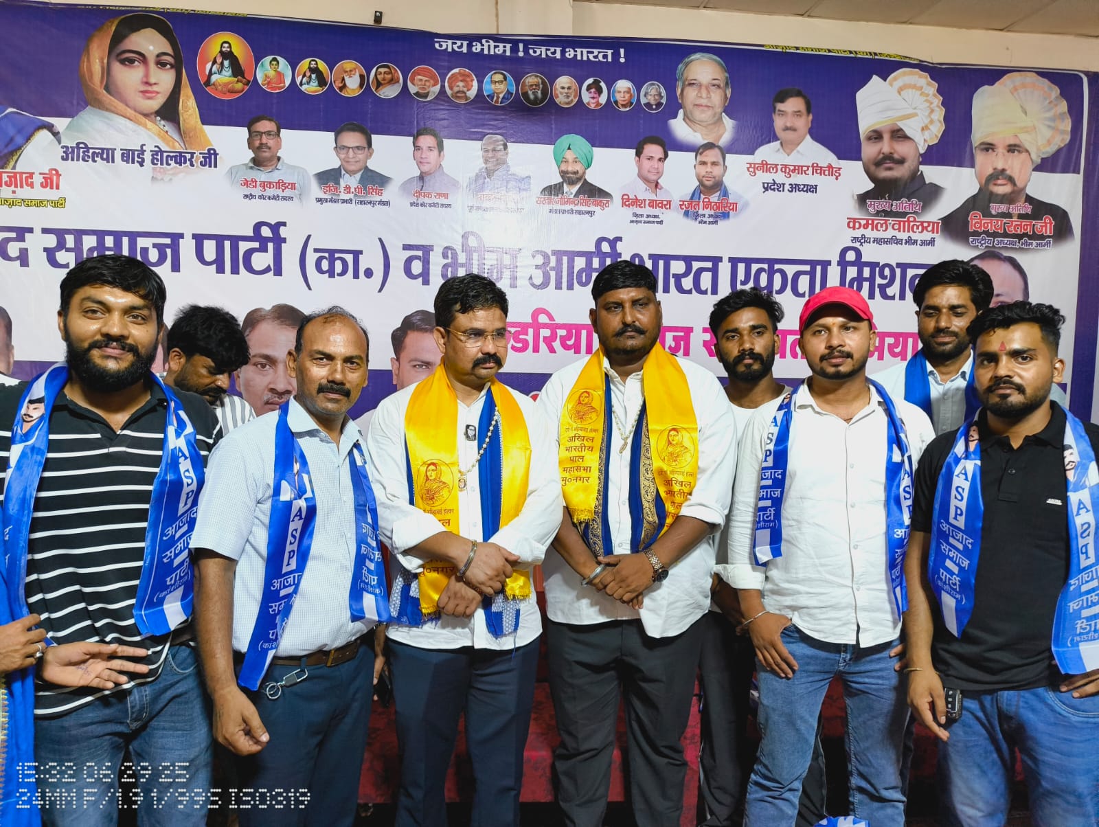 आजाद समाज पार्टी (कांशीराम) और भीम आर्मी एकता मिशन के सामाजिक कार्यक्रम का शुभारंभ भीम आर्मी एकता मिशन के राष्ट्रीय अध्यक्ष विनय रतन व राष्ट्रीय महासचिव कमल सिंह वालिया ने मुख्य अतिथि के रूप द्वीप प्रज्जवलन कर किया। कार्यक्रम में बड़ी संख्या में पाल समाज के युवाओं, महिलाओं और बुद्धिजीवी लोगों ने पहुंचकर सामाजिक न्याय, आत्मसम्मान और राजनीतिक भागीदारी के लिए संगठित होने का आह्वान किया। इस दौरान अखिल भारतीय पाल महासभा के जिलाध्यक्ष शिवकुमार पाल ने आजाद समाज पार्टी की सदस्यता लेकर पार्टी का ज्वाइंन किया। इस दौरान उनके साथ पाल समाज के सैकड़ों जागरूक नागरिकों ने अपनी उपस्थिति दर्ज कर समाज की शक्ति और एकता का परिचय दिया। शिव कुमार पाल ने कहा कि जिस समाज की मेहनत से देश चलता है, उसकी आवाज सदियों तक दबाई गई। अब वह आवाज गूंजेगी। कार्यक्रम में विनय रतन सिंह, कमल सिंह वालिया, शिव कुमार पाल, जगदीश पाल,