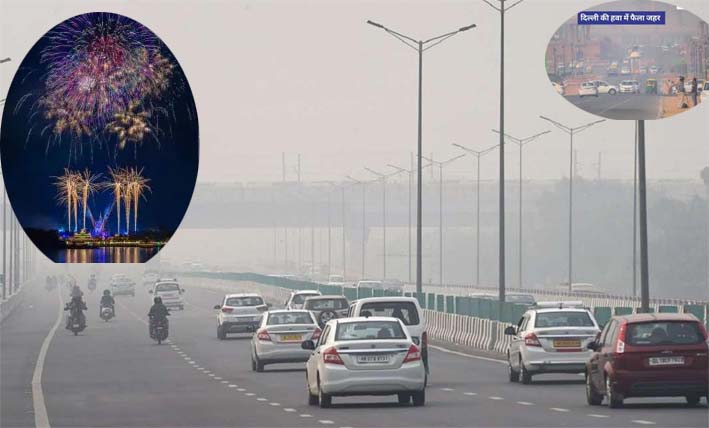 LP Live, New Delhi: दिल्ली-एनसीआर यानी दिल्ली, गाजियाबाद, नोएडा, गुरुग्राम व फरीदाबाद आदि क्षेत्र में दिवाली के जश्न के कारण हवा जहरीली हो गई है, जिसक कारण दिल्ली-एनसीआर में सुबह धुंध की मोटी चादर नजर आने लगी। मसलन वायु गुणवत्ता सूचकांक (AQI) बेहद खतरनाक मोड़ पर पहुंच गया है। इसका कारण किवाली की देर रात तक बड़े पैमाने पर फोड़े पटाखे हैं।