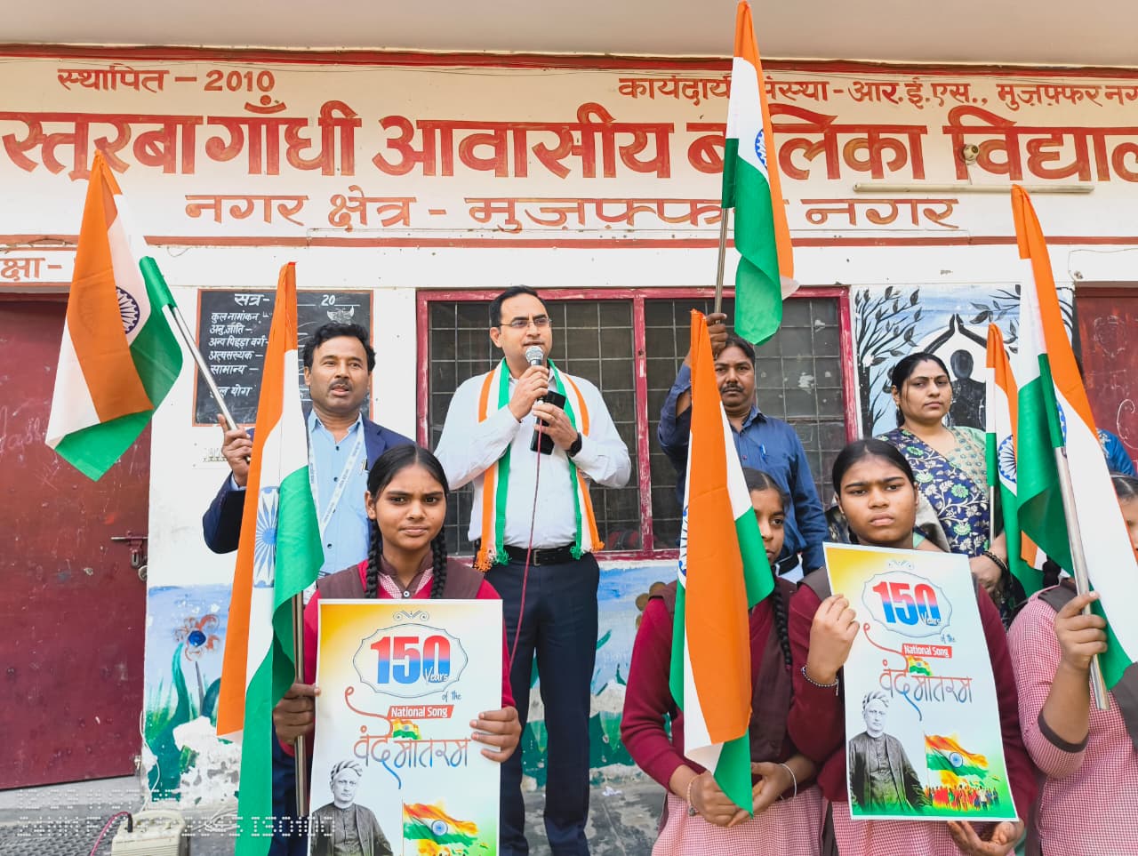 लोकपथ लाइव, मुजफ्फरनगर। राष्ट्रवाद के अग्रदूत बंकिमचंद्र चट्टोपाध्याय द्वारा वर्ष 1875 में रचित राष्ट्रगीत वंदे मातरम् गीत के 150 वर्ष पूर्ण होने पर जनपद में वंदे मातरम् के सामूहिक वाचन कार्यक्रम हुआ। पीएम नरेंद्र मोदी और सीएम योगी आदित्यनाथ के संबोधन के बाद जिला पंचायत सभागार में डीएम उमेश मिश्रा ने राष्ट्रीय गीत वंदे मातरम का गीत गाया, जिसको कलेक्ट के सभी उपस्थित अधिकारियों कर्मचारियों ने दोहराया। इसके बाद जनपद के सभी विभागों में भी अधिकारियों व कर्मचारियों ने कार्यालय में सामूहिक गीत गाकर राष्ट्रीय गीत का सम्मान किया।