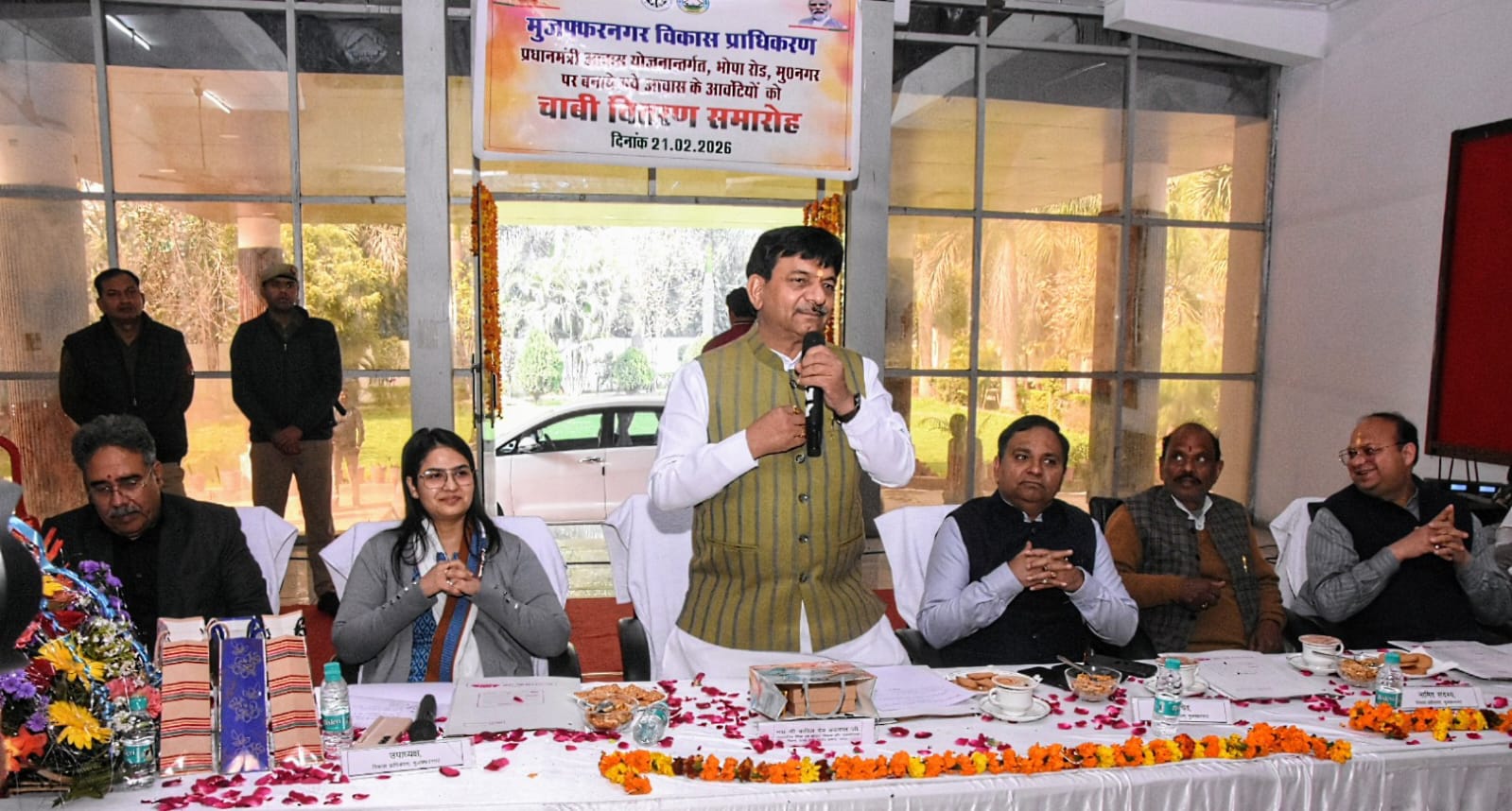 लोकपथ लाइव, मुजफ्फरनगर। मुजफ्फरनगर विकास प्राधिकरण द्वारा प्रधानमंत्री आवास योजना (शहरी) के अंतर्गत भोपा रोड बाईपास क्रॉसिंग स्थित आवासीय योजना में निर्मित भवनों की चाबी वितरण समारोह का आयोजन शुक्रवार को प्राधिकरण कार्यालय परिसर में किया गया। लगभग 15 करोड़ रुपये की लागत से बने 224 भवनों में से पूर्व में लॉटरी 11 मार्च 2024 के माध्यम से आवंटित 209 लाभार्थियों को आज विधिवत चाबियां सौंपी गईं। राज्यमंत्री कपिल देव अग्रवाल ने इस सौगात को होली व रमजान का तौफा बताया है।
