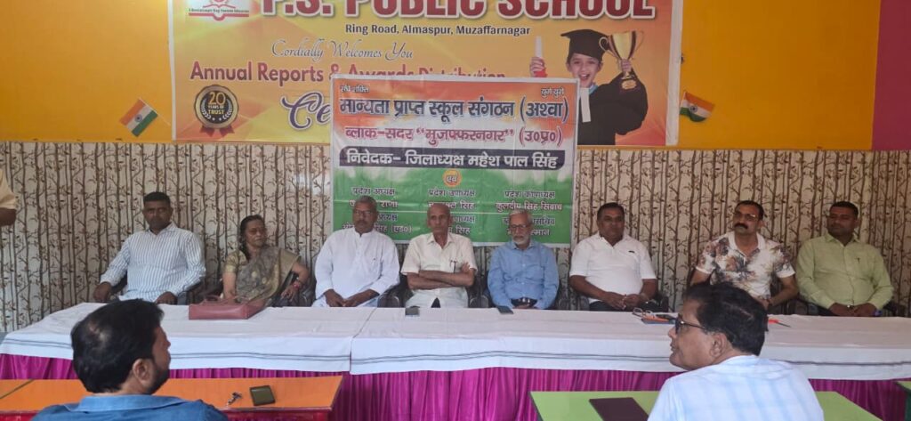 LP Live, Muzaffarnagar: मान्यता प्राप्त स्कूल संगठन की एक महत्वपूर्ण बैठक शनिवार को अलमासपुर स्थित पीएस पब्लिक स्कूल में संपन्न हुई। बैठक में संगठन के पदाधिकारियों द्वारा शिक्षा की गुणवत्ता, विद्यालयों से जुड़ी व्यवस्थाएं एवं विद्यार्थियों के हितों को सर्वोपरि रखने पर बल दिया गया।