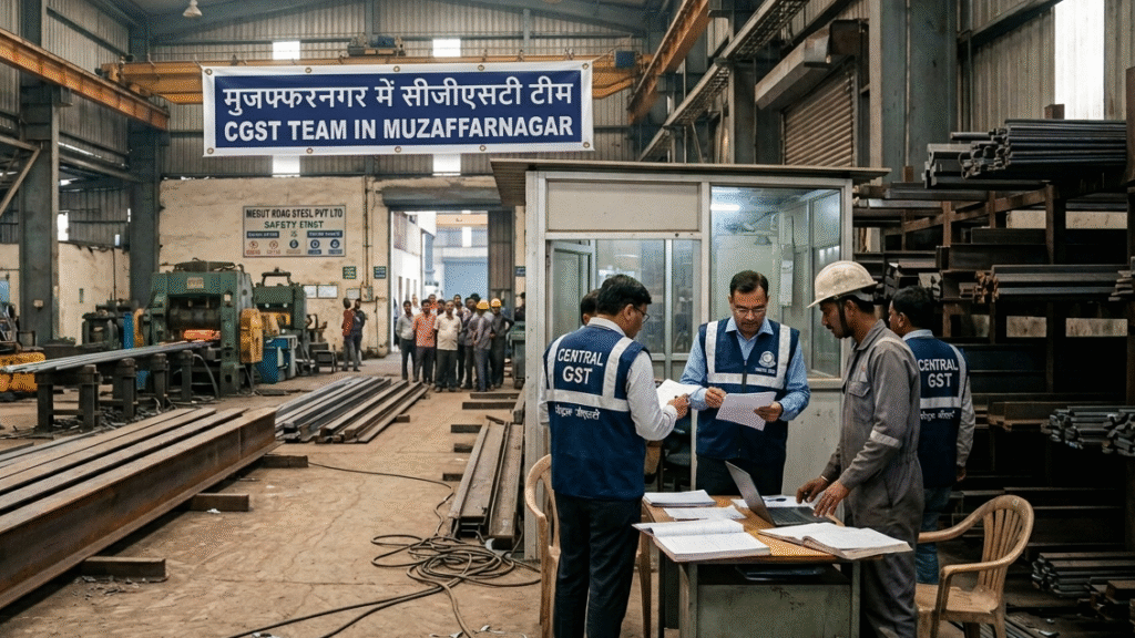 लोकपथ लाइव, मुजफ्फरनगर। मेरठ रोड स्थित एक प्रमुख स्टील फैक्ट्री पर बुधवार को सेंट्रल जीएसटी (CGST) की टीम ने अचानक छापेमारी की, जिससे पूरे औद्योगिक क्षेत्र में हड़कंप मच गया। मेरठ से आई जीएसटी विभाग की टीम ने फैक्ट्री परिसर में प्रवेश करते ही मोर्चा संभाल लिया और सघन जांच-पड़ताल शुरू कर दी। यह छापेमारी कई घंटों तक लगातार चलती रही, जिसके दौरान विभाग के अधिकारियों ने फैक्ट्री के स्टॉक, बिलिंग रिकॉर्ड और वित्तीय लेनदेन की बारीकी से जांच की।
