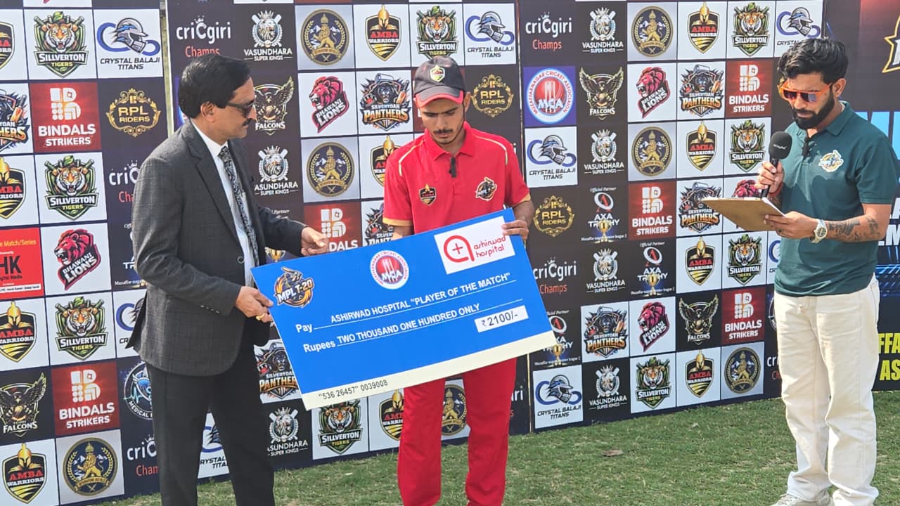 जवाब में 94 रनों के आसान लक्ष्य का पीछा करने उतरी अंबा वॉरियर्स ने शुरुआत से ही आक्रामक रुख अपनाया। कप्तान विवेक सरोहा के 24 रनों और मोहम्मद अनस की नाबाद 21 रनों की पारी की बदौलत टीम ने महज 13.3 ओवर में 3 विकेट खोकर 95 रन बना लिए और जीत सुनिश्चित की। गेंदबाजी में 4 विकेट लेने के बाद नाबाद 21 रन बनाने वाले मोहम्मद अनस को उनके शानदार ‘ऑलराउंड’ प्रदर्शन के लिए ‘मैन ऑफ द मैच’ के पुरस्कार से नवाजा गया। इस जीत से स्टेडियम में मौजूद खेल प्रेमियों में जबरदस्त उत्साह देखा गया।