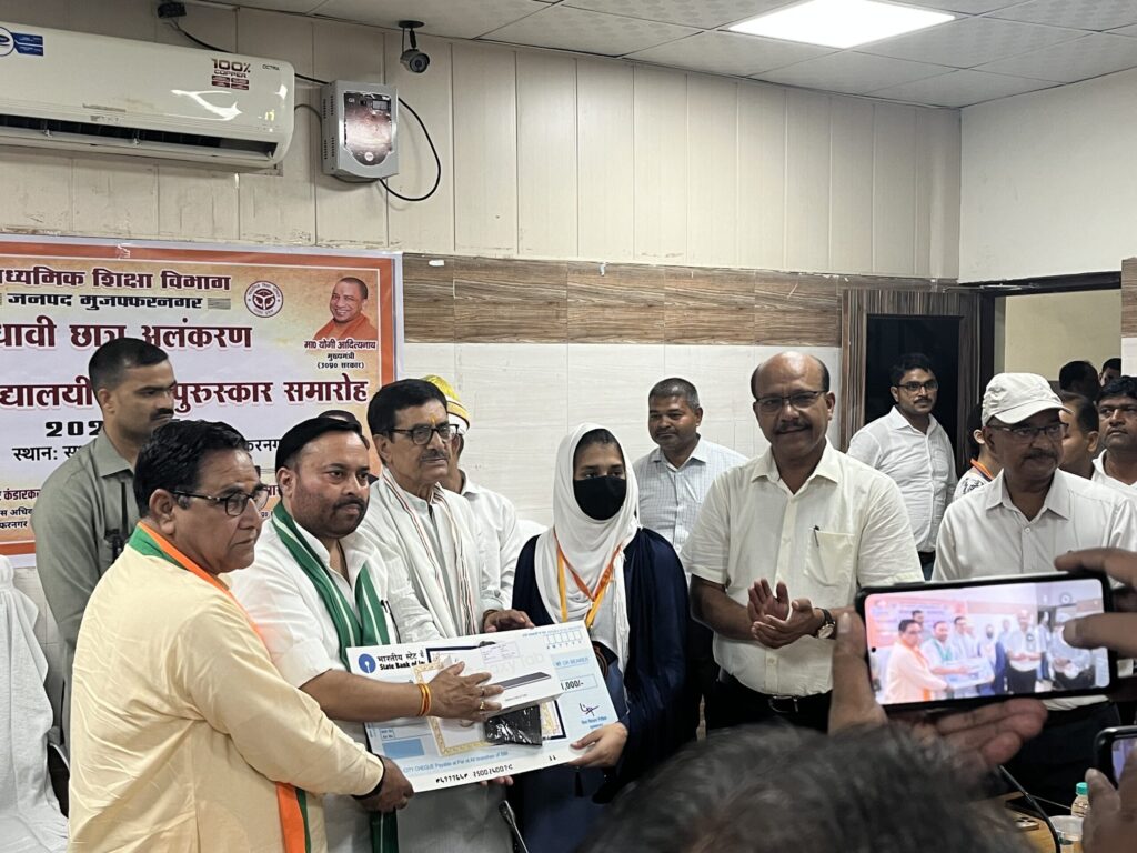 LP Live, Muzaffarnagar: उत्तर प्रदेश माध्यमिक शिक्षा बोर्ड परिषद के बोर्ड परीक्षा के 22 मेधावियों को गुरुवार को सम्मानित किया गया। इस दौरान 12 वीं कक्षा के 12 और दसवीं कक्षा के जनपद स्तर के 10 मेधावियो को सम्मानित किया गया। इस अवसर पर स्कूल स्तर पर खेलों में बेहतर प्रदर्शन करने वाले पाँच खिलाड़ी भी पुरस्कृत हुए। छात्र-छात्राओं को 21-21 हजार रुपये के चैक सहित टेबलेट मिले। वंही खिलाड़ियों को एकल वर्ग में 25 हजार रुपये की धनराशि व ग्रुप को पचास हजार रुपये के चेक प्रदान किए गए। सम्मानित होने से पूर्व छात्र छात्राओं को लखनऊ से मुख्यमंत्री का सजीव प्रसारण दिखाया गया। मेधावियों खिलाड़ियों को सम्मानित करने के लिए प्रदेश के कैबिनेट मंत्री अनिल कुमार, जिला पंचायत अध्यक्ष डॉ वीरपाल निर्वाल डीएम उमेश मिश्रा डीआईओएस राजेश श्रीवास, जिला समन्वयक आशीष द्विवेदी, प्रधानाचार्य रणवीर सिंह, प्रवेंद्र दहिया, अनिल शास्त्री आदि मौजूद रहे।