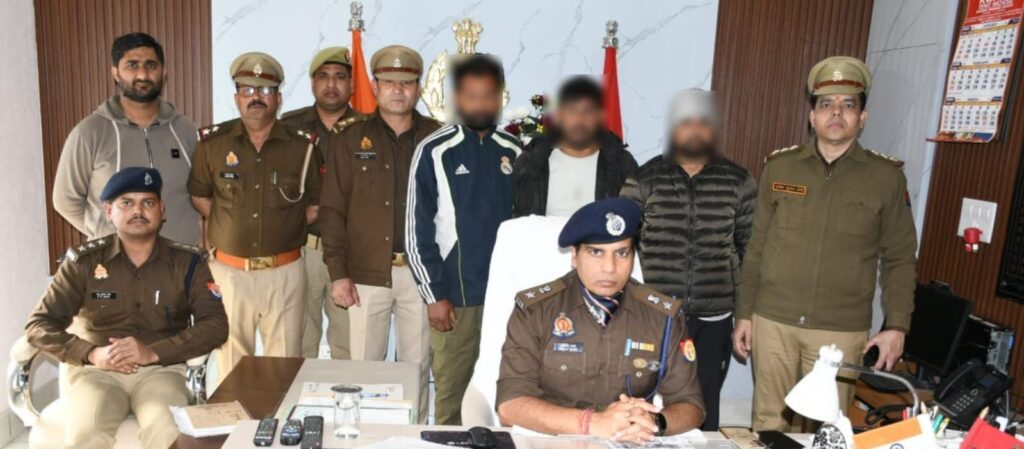 मुजफ्फरनगर एसएसपी संजय कुमार वर्मा ने शनिवार को पुलिस लाइन में पत्रकार वार्ता की है। इसमें एसएसपी ने बताया कि विनोद पाल (सुपरवाईजर एम.एस. वाटर मेलन कंपनी) द्वारा थाना नई मण्डी पुलिस को लिखित तहरीर देकर अवगत कराया गया कि थानाक्षेत्र नई मण्डी के अंतर्गत अमेजन कंपनी से सोने के बिस्किट व सिक्के के पांच पार्सल आर्डर किये गये थे, जिन्हे ब्लूडार्ट कंपनी द्वारा दिये गये पते पर पहुंचाया गया था। पार्सल मंगाने वाले व्यक्ति ने डिलिवरी बॉय से संपर्क कर पार्सल ले लिये थे तथा पार्सल के बाक्स से धोखाधडी कर सिक्के व बिस्किट निकालकर खाली बाक्स वापस कर दिया। थाना नई मण्डी पुलिस ने अभियुक्तगण की गिरफ्तारी के लिए थाना नई मण्डी पर पुलिस टीमों का गठन किया गया। गठित पुलिस टीम को उक्त घटना को कारित करने वाले तीन शातिर अभियुक्तगण को मुखबिर की सूचना पर सहावली कट के पास से गिरफ्तार किया गया। गिरफ्तार अभियुक्तगण के कब्जे से सोने के 02 बिस्किट व 02 सिक्के, 04 मोबाईल फोन बरामद किये गये। अभियुक्तगण की गिरफ्तारी व बरामदगी के सम्बन्ध में थाना नई मण्डी पुलिस द्वारा अग्रिम विधिक कार्वयाही की जा रही है।