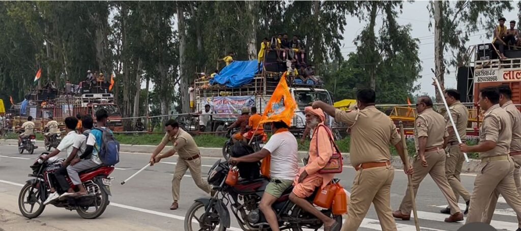 शहर मेंआने से रोकने के लिए चलाई गई लाठियां: मुजफ्फरनगर पुलिस पहले दिन से ही कांवड़ यात्रा को सफल बनाने के लिए दिन रात काम में जुटी है। डीआईजी सहारनपुर अभिषेक सिंह लगातार जिले में भ्रमणशील रहे, लेकिन डाक कांवड़ियों को रास्ता समझाने के लिए पुलिस द्वारा कांवड़ियों पर उठाई गई लाठी बड़ा सवाल बन गई है। दरअसल, हरिद्वार की तरफ से आ रहे डाक कांवड़ियां शिवचौक की परिक्रमा करने के लिए बझेड़ी कट से अंदर कच्ची सड़क होते हुए शिवचौक पहुंचते हैं। जानकारी के आभाव में पुलिस ने कच्ची सड़क जाने वाले रास्ते को बैरिकेडिंग कर बंद कर दिया। इस कारण कांवड़िए रोंग साइड से बझेडी कट में प्रवेश के लिए पहुंचे। वहां सीओ नई मंडी रूपाली राय के साथ 12 से अधिक पुलिसकर्मी खड़े हो गए। कांवड़िएं पहुंचे तो उन्हें वापस भेजने और रोंग साइड आने को लेकर पुलिस ने सख्ती दिखाई। पुलिस सख्ती में कांवड़ियों को थक्का देकर वापस किया गया। इस दौरान उनके पीछे दौड़ते हुए लाठी भी बरसाई गई। कई कावंड़ियों को इस दौरान लाठी भी लगी, जो मीडिया के कैमरों में कैद हो गए।
