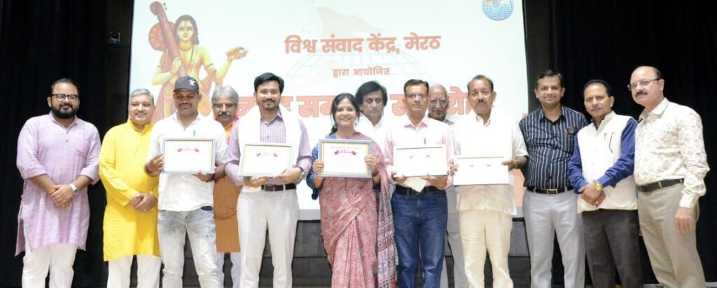 LP Live, Meerut: विश्व संवाद केन्द्र के तत्वावधान में मेरठ स्थित सीसीएस विश्वविद्यालय के अटल सभागार में नारद सम्मान समारोह 2025 का आयोजन हुआ। इसमें श्रीराम कालेज के पत्रकारिता एवं जन संचार विभागध्यक्ष रवि भूषण गौतम को मीडिया शिक्षण क्षेत्र में भूमिका निभाने पर विशेष रूप से सम्मानित किया गया। इस अवसर पर अलग-अलग क्षेत्र के पत्रकार भी सम्मानित हुए।