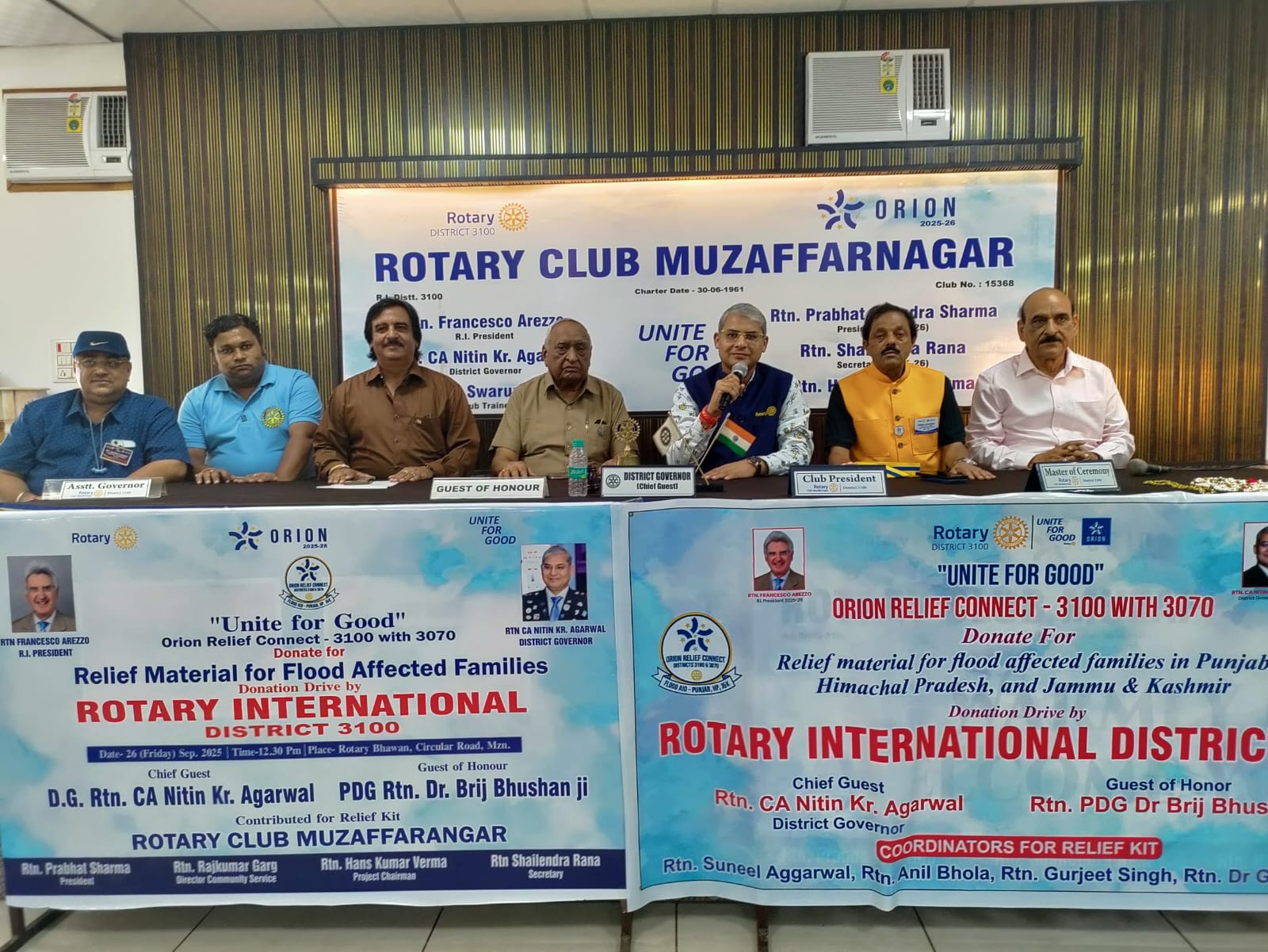 रोटरी डिस्ट्रिक्ट 3100 ने 500 परिवारों को गोद लेने का निर्णय लिया था, जिसके क्रम मे एक ट्रक खुर्जा से 17 सितम्बर को रवाना कर दिया गया। दूसरा ट्रक 26 सितम्बर को मुज़फ्फरनगर से रवाना किया जा रहा है। इस ट्रक मे राहत सामंग्री बर्तन,कम्बल,बाल्टी,मग,जैकेट,तकिया व अन्य घरेलु सामान। इस ट्रक के माध्यम से जालंधर भिजवाया जा रहा है।