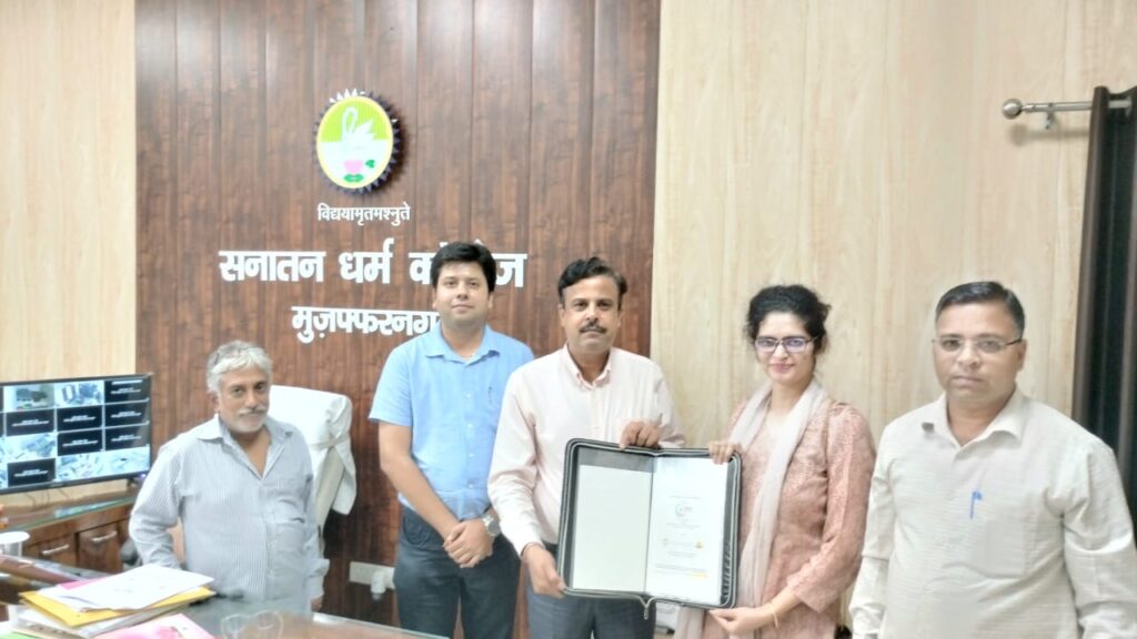 LP Live, Muzaffarnagar: सनातन धर्म डिग्री कॉलेज मुजफ्फरनगर में नए शैक्षणिक सत्र की शुरूआत एक महत्वपूर्ण अनुबंध के साथ हुई। सनातन धर्म कॉलेज मुजफ्फरनगर और उत्तर प्रदेश सरकार के एमएसएमई व निर्यात प्रोत्साहन विभाग के बीच हुए इस अनुबंध से संस्थान के विद्यार्थियों को व्यवसायिक विकास के नए अवसर मिलेंगे। जो युवा उद्यमी उद्योग लगाएगा तो उत्तर प्रदेश के एमएसएमई व निर्यात प्रोत्साहन विभाग द्वारा आर्थिक सहायता प्रदान की जाएगी। 25 करोड़ की आबादी में 56 प्रतिशत युवा वाला उत्तर प्रदेश राज्य में इसी क्रम में मुख्यमंत्री योगी के विजन के तहत इस अभियान की शुरुआत की जा रही है। इससे युवाओं के उत्थान और उनके सपनों को हकीकत में बदलने का प्रयास किया जा रहा है। परिणामस्वरुप जहां युवा अपना खुद का रोजगार स्थापित करके अपने उद्योग के मालिक बनेंगे तथा साथ ही अन्य लोगों के लिए रोजगार के अवसर भी खोलेंगे। इस अवसर पर कॉलेज के प्राचार्य प्रोफेसर सुधीर कुमार पुंडीर, पीयूष शर्मा तथा उत्तर प्रदेश सरकार के एमएसएमई व निर्यात प्रोत्साहन विभाग की ओर से उप आयुक्त उद्योग मुजफ्फरनगर जैस्मीन फौजदार, आशीष कुमार सहायक उप आयुक्त उद्योग मुजफ्फरनगर उपस्थित रहे। उप आयुक्त उद्योग मुजफ्फरनगर ने औपचारिक रूप से यह अनुबंध प्राचार्य प्रोफेसर सुधीर कुमार पुंडीर को सौंपा। अनुबंध पर कॉलेज के प्राचार्य ने प्रसन्नता व्यक्त करते हुए कहा कि इस सहयोग से हमारे छात्रों को उद्योग जगत की व्यावहारिक जानकारी मिलेगी और रोजगार की संभावनाएं भी प्रबल होगी।