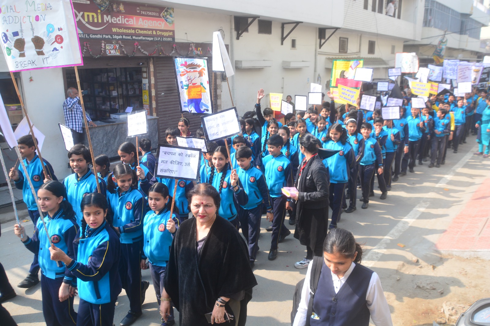 लोकपथ लाइव, मुजफ्फरनगर। समाज में बढ़ती मोबाइल फोन की लत एवं उसके बच्चों पर पड़ रहे दुष्परिणामों के प्रति जागरूकता फैलाने के उद्देश्य से गुरुवार को श्री गिरधारी लाल जैन मेमोरियल पब्लिक स्कूल के तत्वावधान में जागरूकता कार्यक्रम हुआ। इसमें मोबाइल से मुक्ति विषय पर विशाल जागरूकता रैली निकालने के साथ तुलसी पार्क में हस्ताक्षर अभियान हुआ, जिसमें 500 से अधिक बच्चों व शहर के गणमान्य लोगों ने प्रतिभाग कर जागरूकता फैलाने में सहयोग किया।