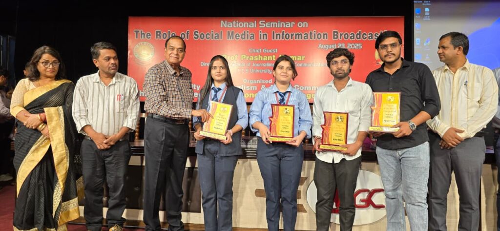 LP Live, Muzaffarnagar: श्री राम कॉलेज के पत्रकारिता एवं जनसंचार संकाय द्वारा सूचना प्रसारण में सोशल मीडिया की भूमिका विषय पर संगोष्ठी हुई। मुख्य अतिथि प्रोफेसर प्रशांत कुमार, चेयरमैन डा. एससी कुलश्रेष्ठ, डा. प्रेरणा मित्तल ने संयुक्त रूप से दीप प्रज्लवित किया। इस दौरान प्रोफेसर प्रो. प्रशांत कुमार ने कहा कि सोशल मीडिया आज यह सबसे तेज़ और प्रभावी सूचना माध्यम है, जिसने जनसंचार की परिभाषा को ही बदल दिया है। यह न केवल समाचार और विचार साझा करने का मंच है, बल्कि अभिव्यक्ति की स्वतंत्रता का भी प्रतीक है। डॉ. एससी कुलश्रेष्ठ ने कहा कि सोशल मीडिया आज सूचना और संचार का सबसे प्रभावशाली माध्यम बन चुका है। इस अवसर पर पत्रकारिता विभाग के छात्र-छात्राएं व शिक्षक मौजूद रहे।
