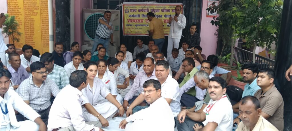 LP Live, Muzaffarnagar: राज्य कर्मचारी संयुक्त परिषद् उत्तर प्रदेश एवं इंडियन पब्लिक सर्विस ऐम्पलाइ फेडरेशन के तत्वावधान में मंगलवार को सीएमओ कार्यालय पर कर्मचारियों ने भूख हड़ताल करने की चेतावनी देते हुए धरना दिया। इस दौरान उन्होंने कर्मचारियों से सरकार द्वारा किए गए वादे पूर्ण नहीं करने पर आक्रोश जताया। वेतन विसंगतियों सहित विभिन्न मांगें उठाते हुए सीएमओ को ज्ञापन सौंपा।