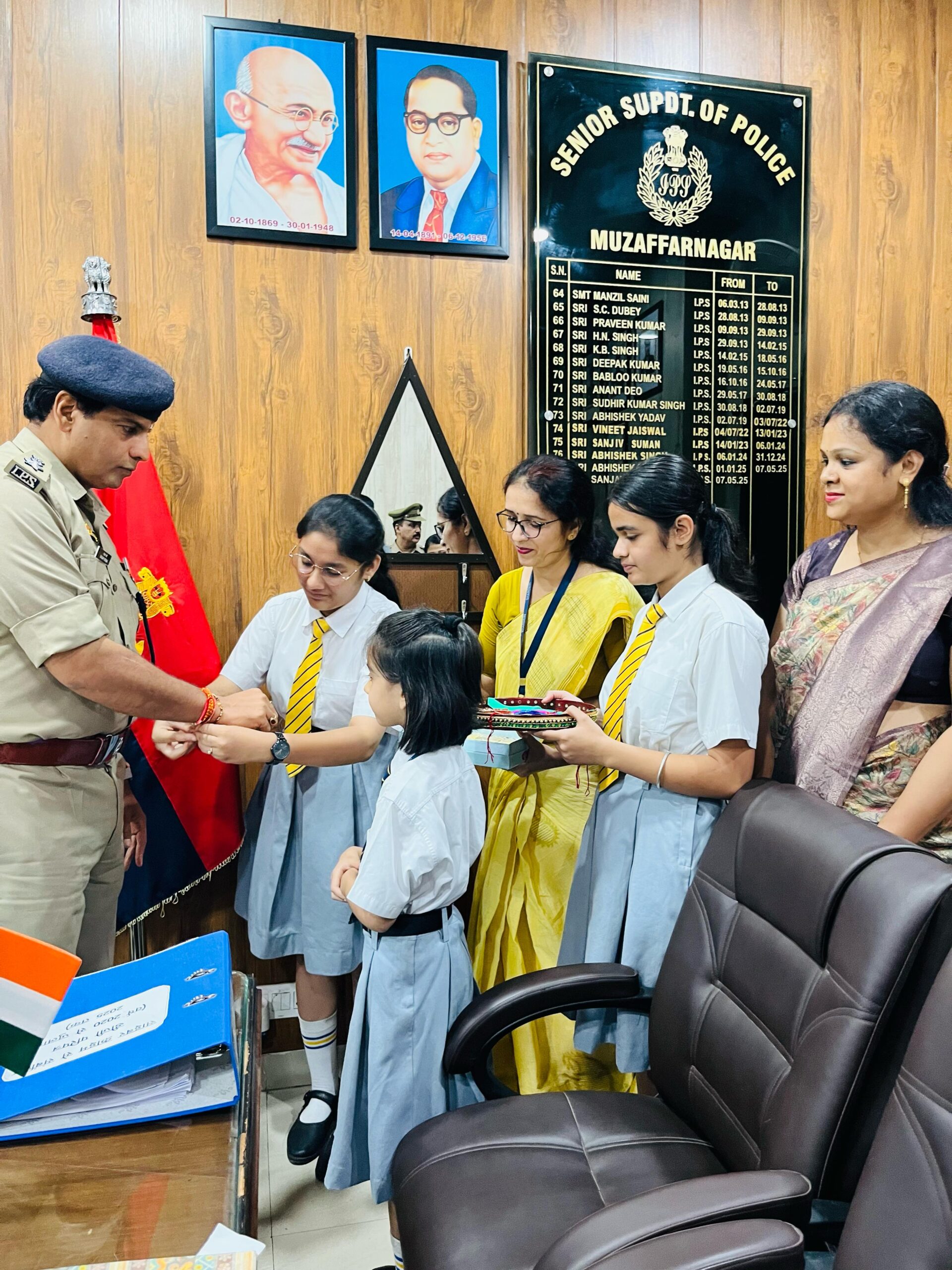 शारदेन विद्यालय की छात्राओं ने रक्षा बंधन के पावन अवसर पर एसएसपी कार्यालय में पहुंचकर रक्षा बंधन पर्व मनाया। इस दौरान छात्राओं ने उनके साथ अपने त्यौहार की खुशियां बांटते हुए राखी बांधी।