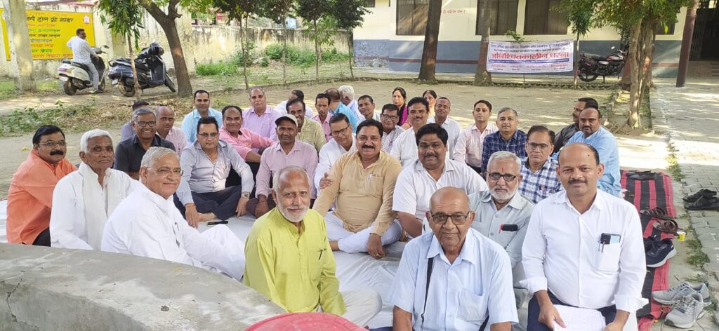 LP Live, Muzaffarnagar: उत्तर प्रदेश माध्यमिक शिक्षक संघ मुजफ्फरनगर के तत्वावधान में जिला विद्यालय निरीक्षक कार्यालय पर चल रहे अनिश्चितकालीन धरने पर मंगलवार को भी शिक्षक पहुंचे। शिक्षकों ने मांगे पूरी नहीं होने तक धरना जारी रखने की हुंकार भरी। शिक्षकों में डीआइओएस व अन्य अधिकारियों द्वारा की जा रही धरने की अनदेखी आक्रोश जाहिर किया।