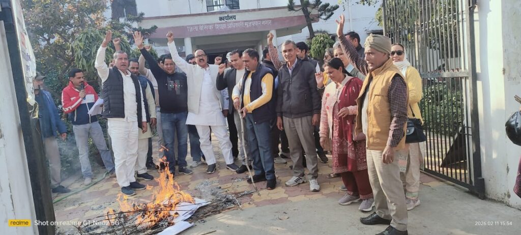 लोकपथ लाइव, मुजफ्फरनगर। परिषदीय विद्यालयों के शिक्षकों ने टीईटी की परीक्षा का फिर से विरोधा शुरू कर दिया है। बुधवार को बेसिक शिक्षा अधिकारी कार्यालय पर पहुंचकर उत्तर प्रदेशीय प्राथमिक शिक्षक संघ के बैनर तले शिक्षकों ने टीईटी की अनिवार्यता का विरोध कर पूतला दहन किया। मांगों को लेकर बीएसए को ज्ञापन सौंपा गया।