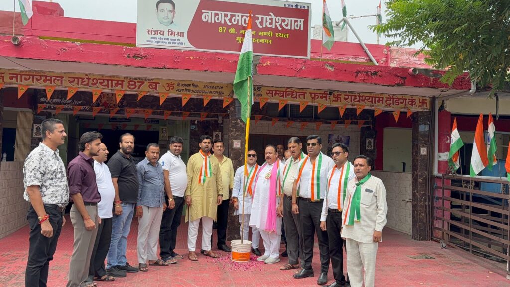 LP Live, Muzaffarnagar: संयुक्त व्यापार संघ कैंप कार्यालय नवीन मंडी स्थल पर ध्वजारोहण कार्यक्रम हुआ। अध्यक्ष संजय मिश्रा द्वारा आयोजित झंडारोहण कार्यक्रममें मुख्य अतिथि प्रदेश उपाध्यक्ष मंडल प्रभारी कृष्ण गोपाल मित्तल,प्रदेश मंत्री सरदार बलविंदर सिंह,जिलाध्यक्ष राकेश त्यागी,संयुक्त व्यापार संघ अध्यक्ष संजय मिश्रा ने झंडारोहण किया गया।