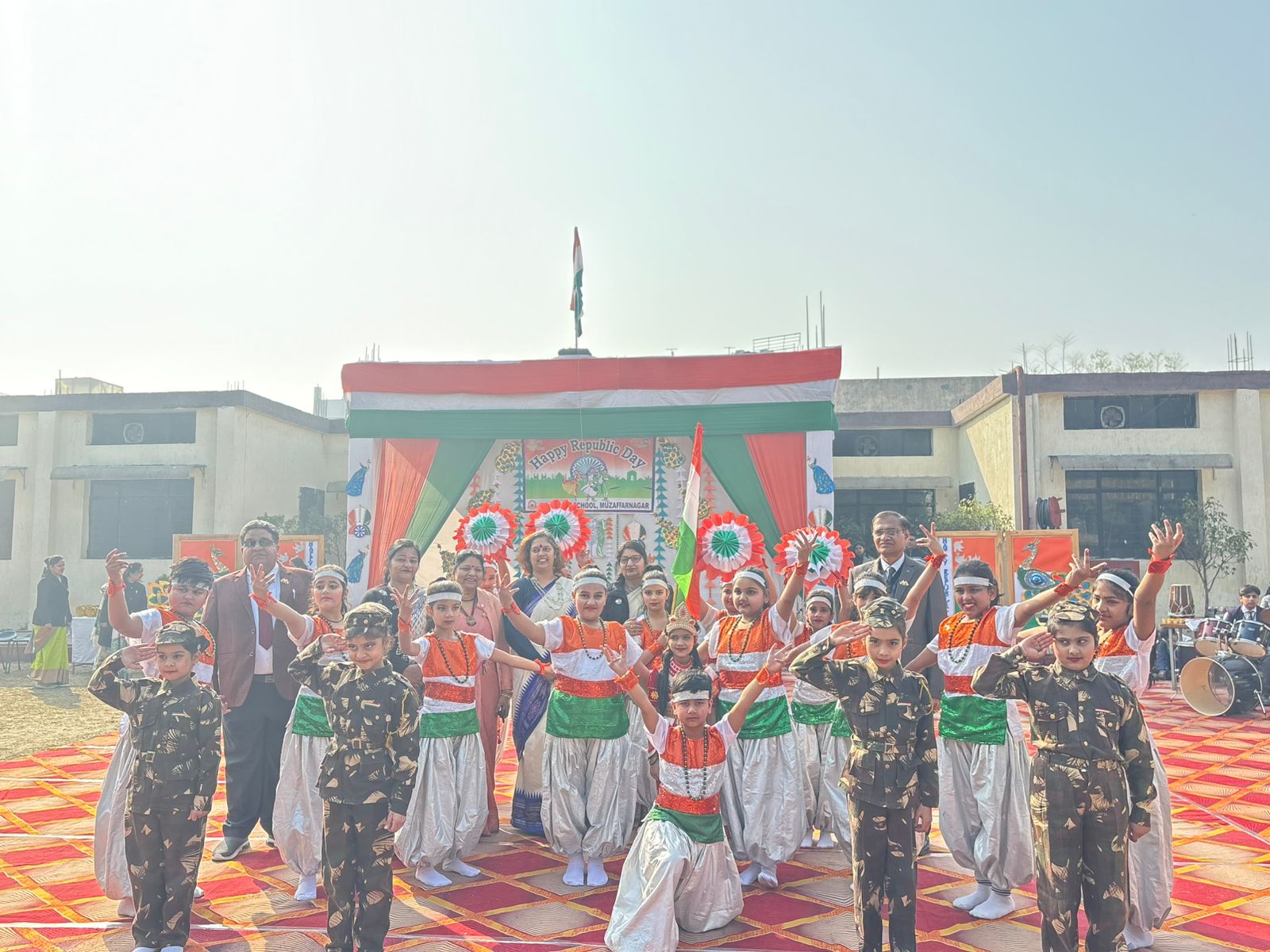 लोकपथ लाइव, मुजफ्फरनगर। 77वां गणतंत्र दिवस शहर के शिक्षण संस्थानों में देशभक्ति के जोश के साथ मना। विभिन्न स्कूल-कालेजों में ध्वजारोहण हुआ, जिसके बाद सांस्कृतिक प्रस्तुतियां हुई। विभिन्न स्कूलों के बच्चों ने प्रभातफेरी में भी प्रतिभाग किया।