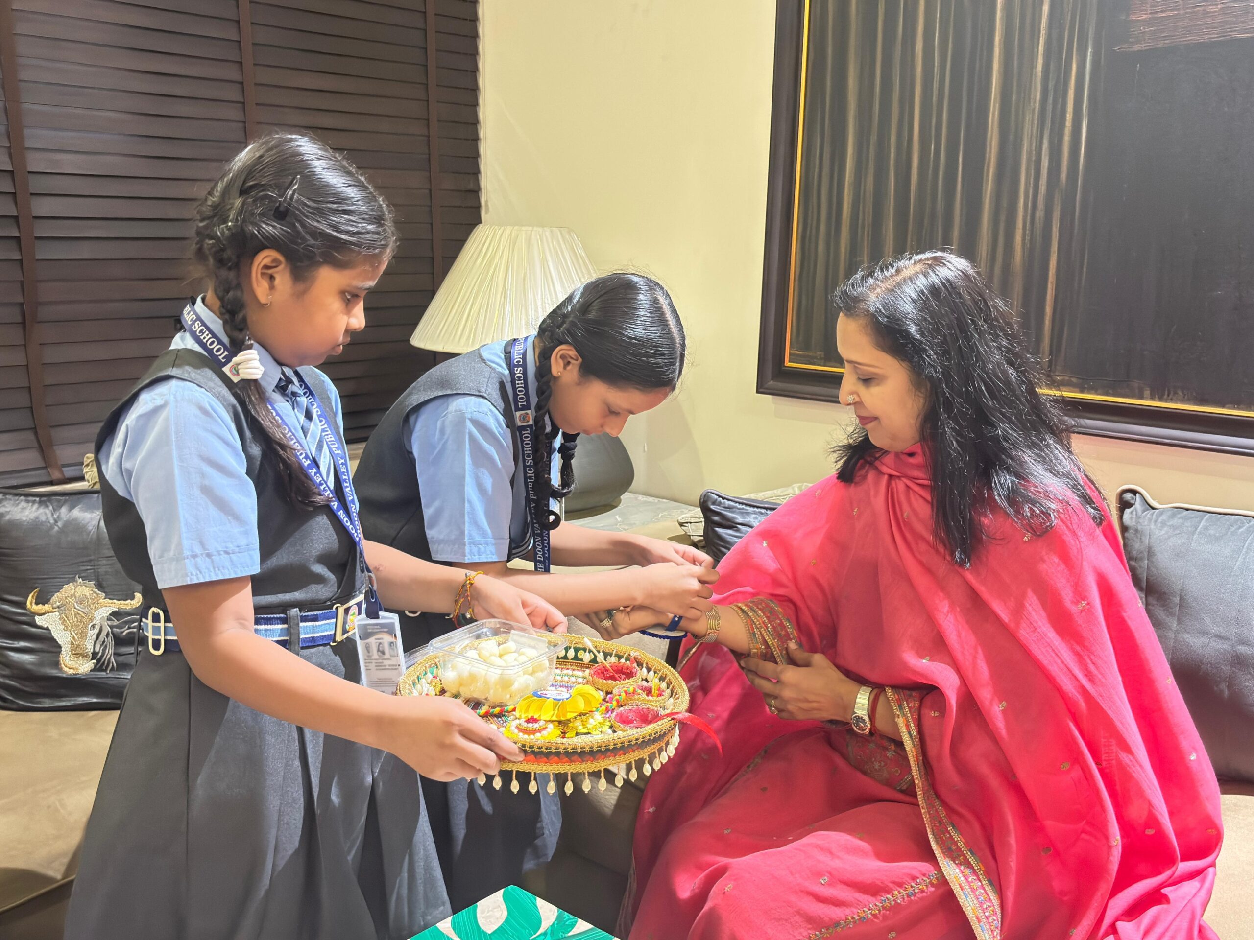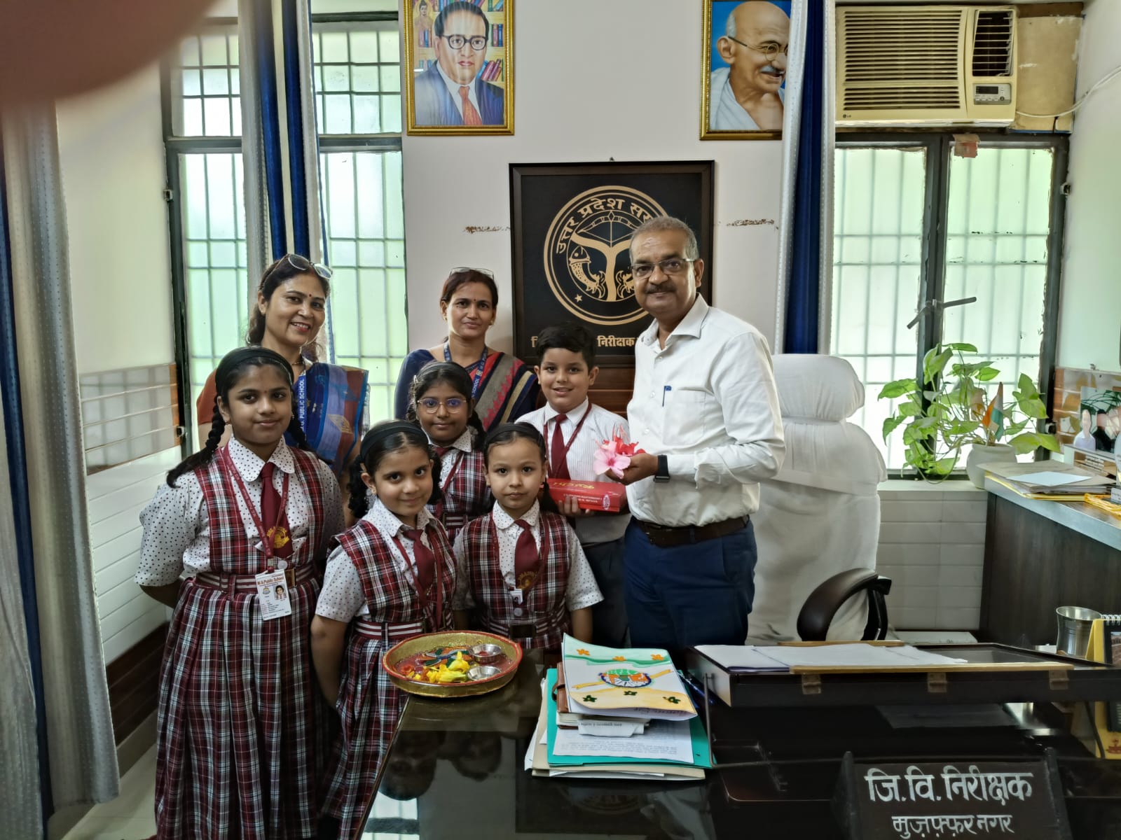 परिक्रमा मार्ग स्थित न्यू हॉराइजन स्कूल में रक्षाबंधन के पावन अवसर पर स्कूल की छात्राओं भूमिका , अनिका त्यागी ,सान्वी पँवार ,विधि सैनी ,अविका, तेजस्वी ने एक अनोखी पहल करते हुए समाज के सुरक्षा प्रहरी अधिकारियों को राखी बांधकर उनके प्रति कृतज्ञता व्यक्त की। छात्राओं ने उत्तर प्रदेश के राज्य मंत्री (स्वतंत्र प्रभार) कपिल देव अग्रवाल ,नगर पालिका अध्यक्ष मीनाक्षी स्वरूप, अपर जिला जिलाधिकारी ( प्रशासन ) संजय कुमार सिंह, और नगर मजिस्ट्रेट पंकज प्रकाश राठौर को राखी बांधकर सुरक्षा के वचन लिए। इस अवसर पर छात्राओं ने रक्षा सूत्र के माध्यम से सामाजिक एकता, कर्तव्य निष्ठा और संवेदनशीलता का संदेश भी दिया । इस दौरान प्रधानाचार्या मीनाक्षी मित्तल ने बच्चों को राखी का महत्व बताया।