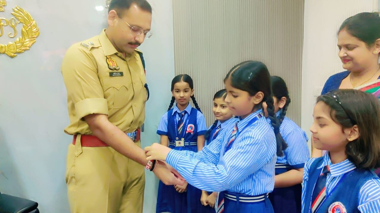 एसपी ग्रामीण की कलाई पर पीआर पब्लिक की छात्राओं ने राखी बांधी