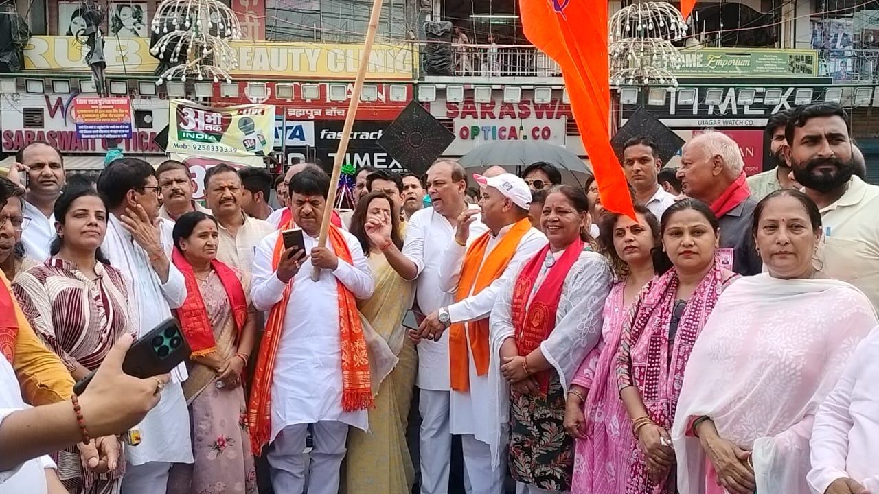 मुजफ्फरनगर के शिव चौक पर कांवड़ियों के उपर बरसे पुष्प
